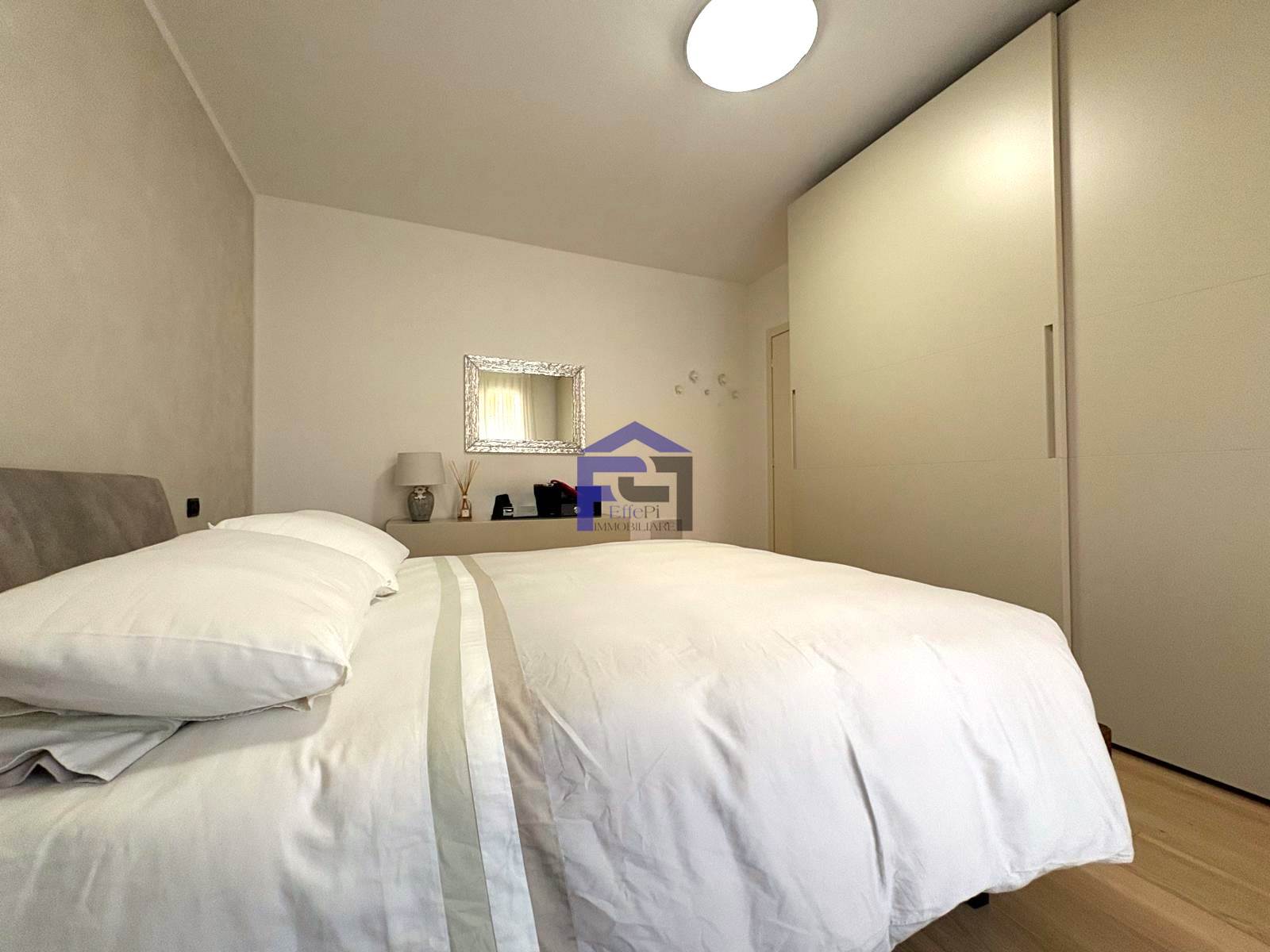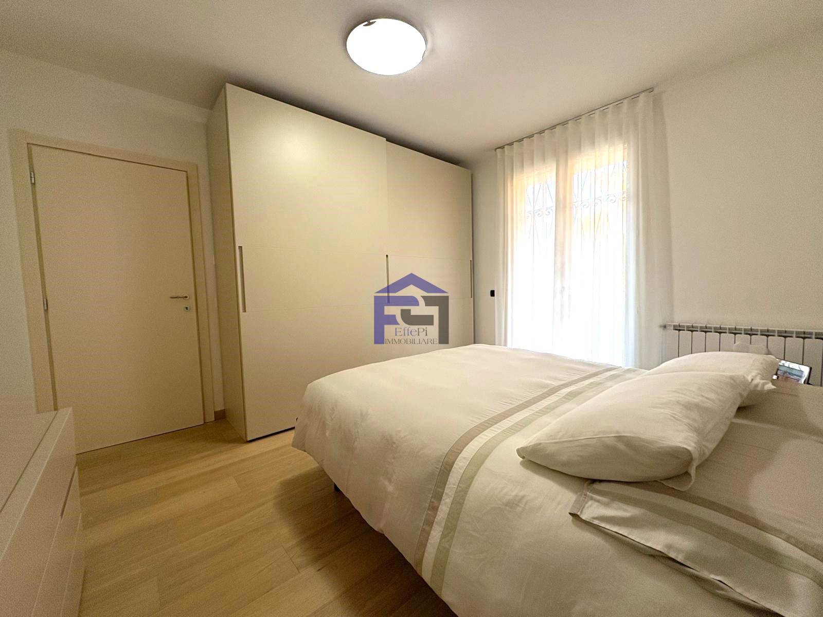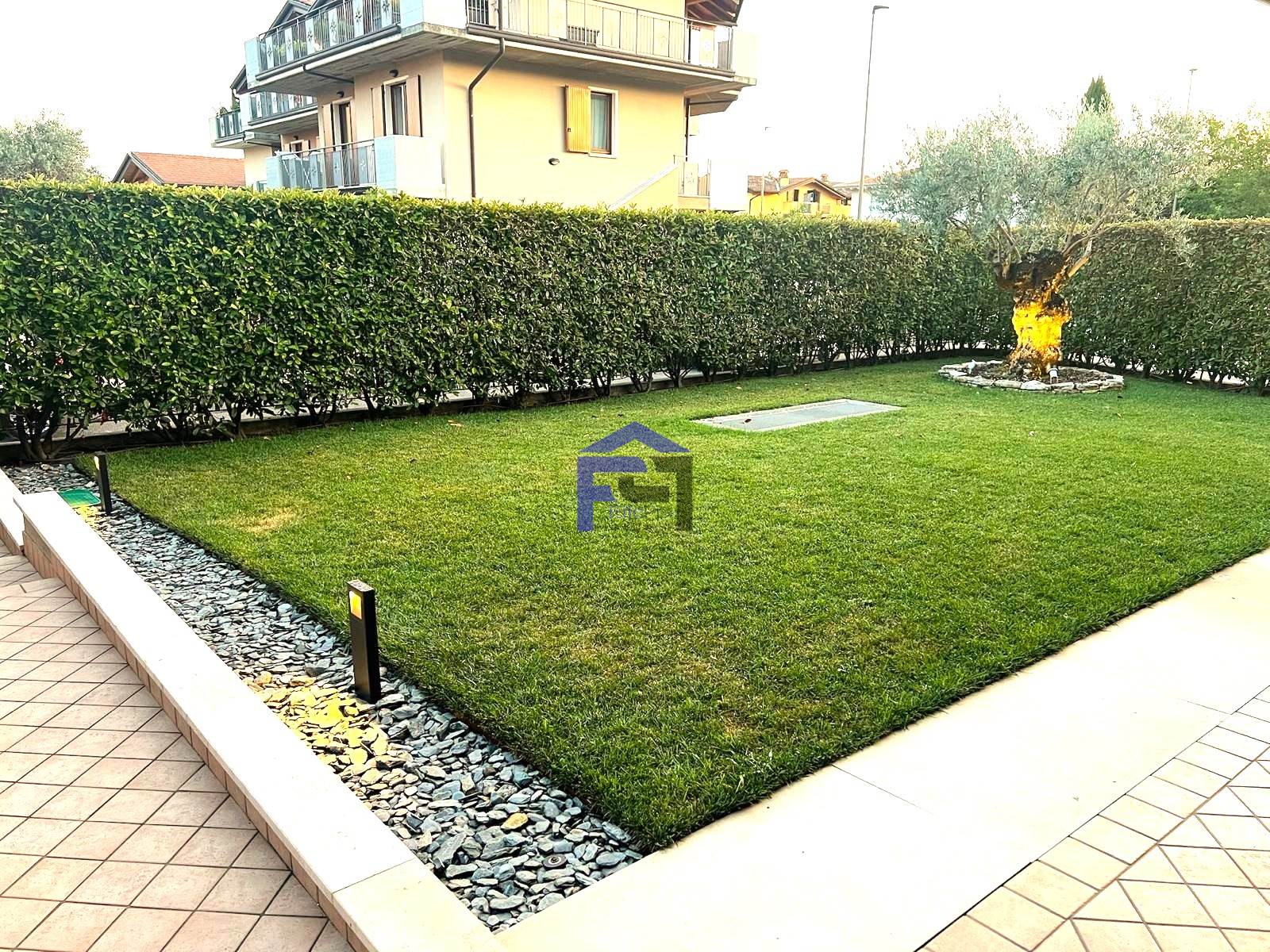 Elegante trilocale in villetta in pregevole zona residenziale al piano terra con ingresso indipendente e giardino privato impreziosito da una pianta di ulivo piantumato su terrapieno. Confortevole soggiorno/cucina, n. 2 camere da letto e bagno. Accessibile dalla zona notte l'appartamento è dotato inoltre di area esterna piastrellata ad uso esclusivo. Al piano interrato, collegato da scala interna, è presente un locale accessorio dotato di lavanderia. Completa la proprietà un box doppio in larghezza.
