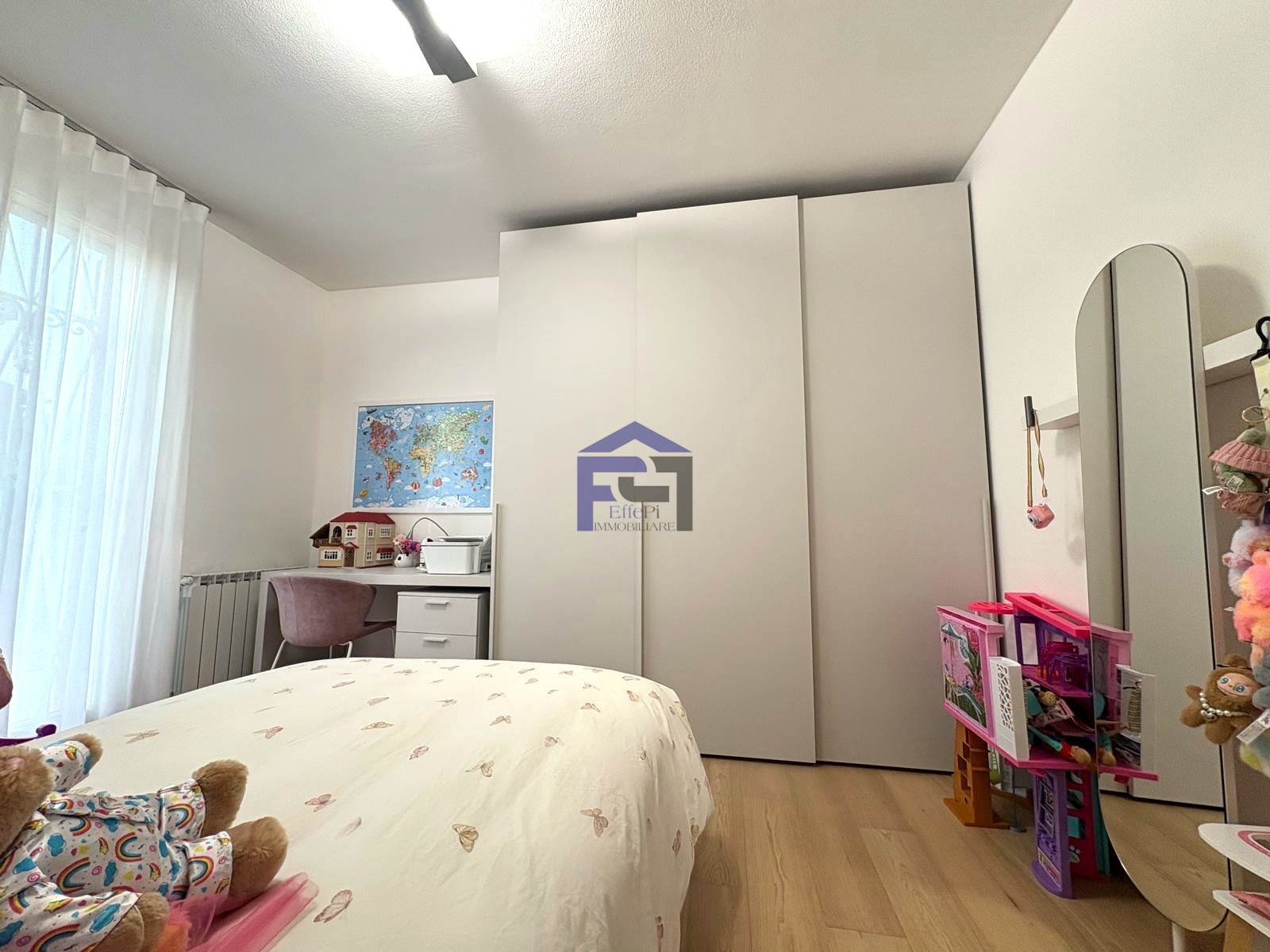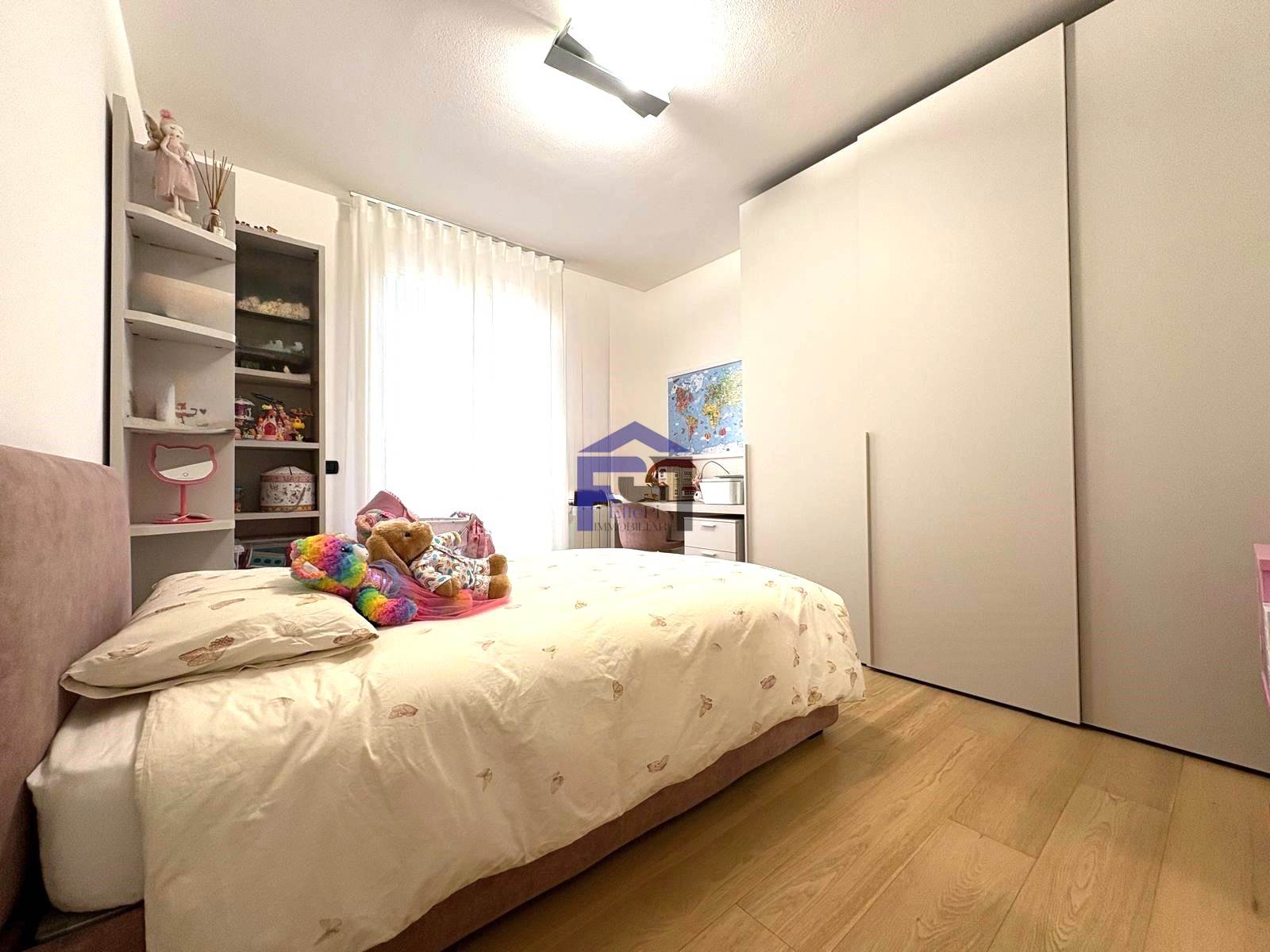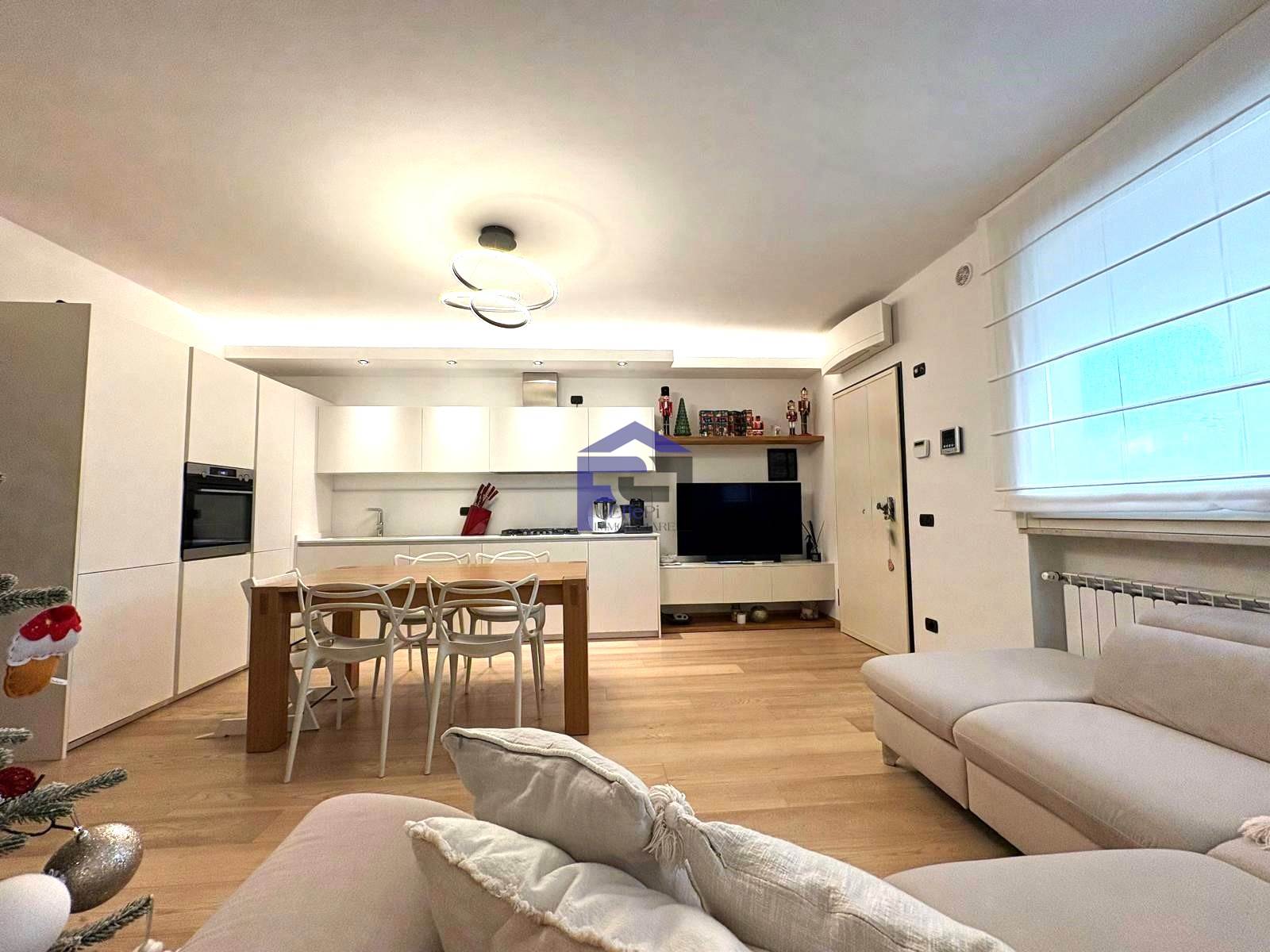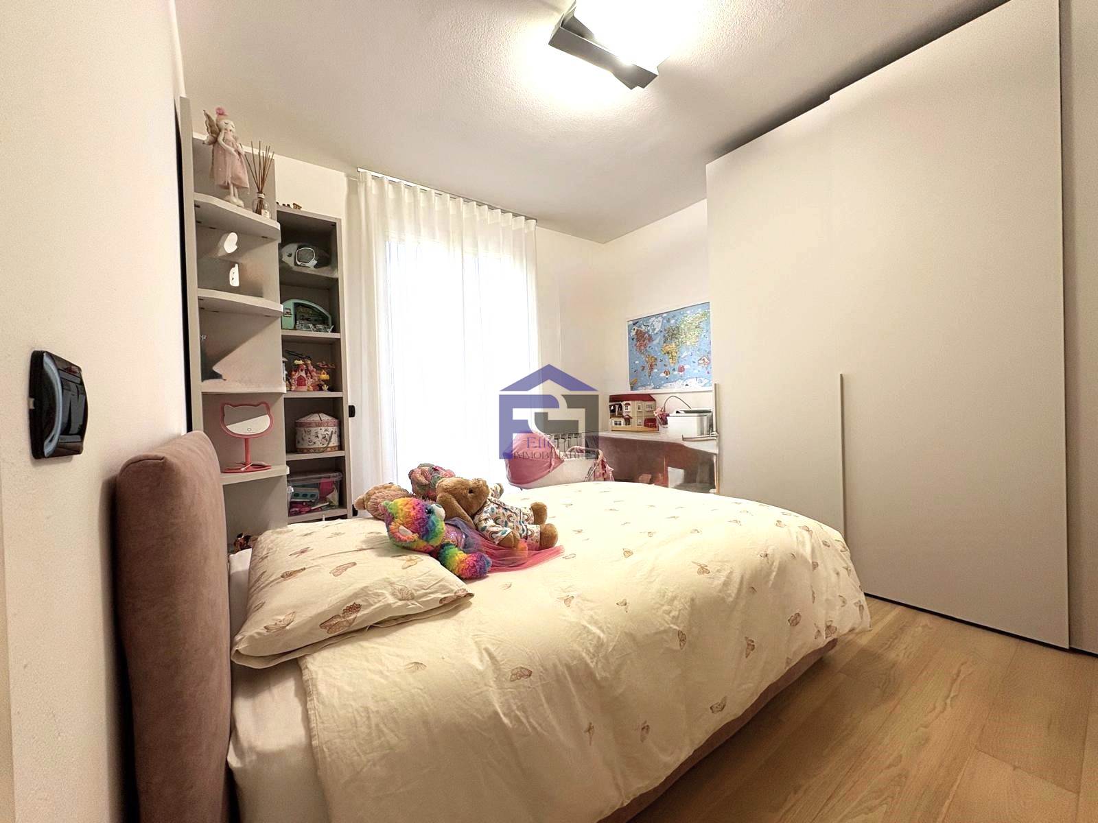 Elegante trilocale in villetta in pregevole zona residenziale al piano terra con ingresso indipendente e giardino privato impreziosito da una pianta di ulivo piantumato su terrapieno. Confortevole soggiorno/cucina, n. 2 camere da letto e bagno. Accessibile dalla zona notte l'appartamento è dotato inoltre di area esterna piastrellata ad uso esclusivo. Al piano interrato, collegato da scala interna, è presente un locale accessorio dotato di lavanderia. Completa la proprietà un box doppio in larghezza.