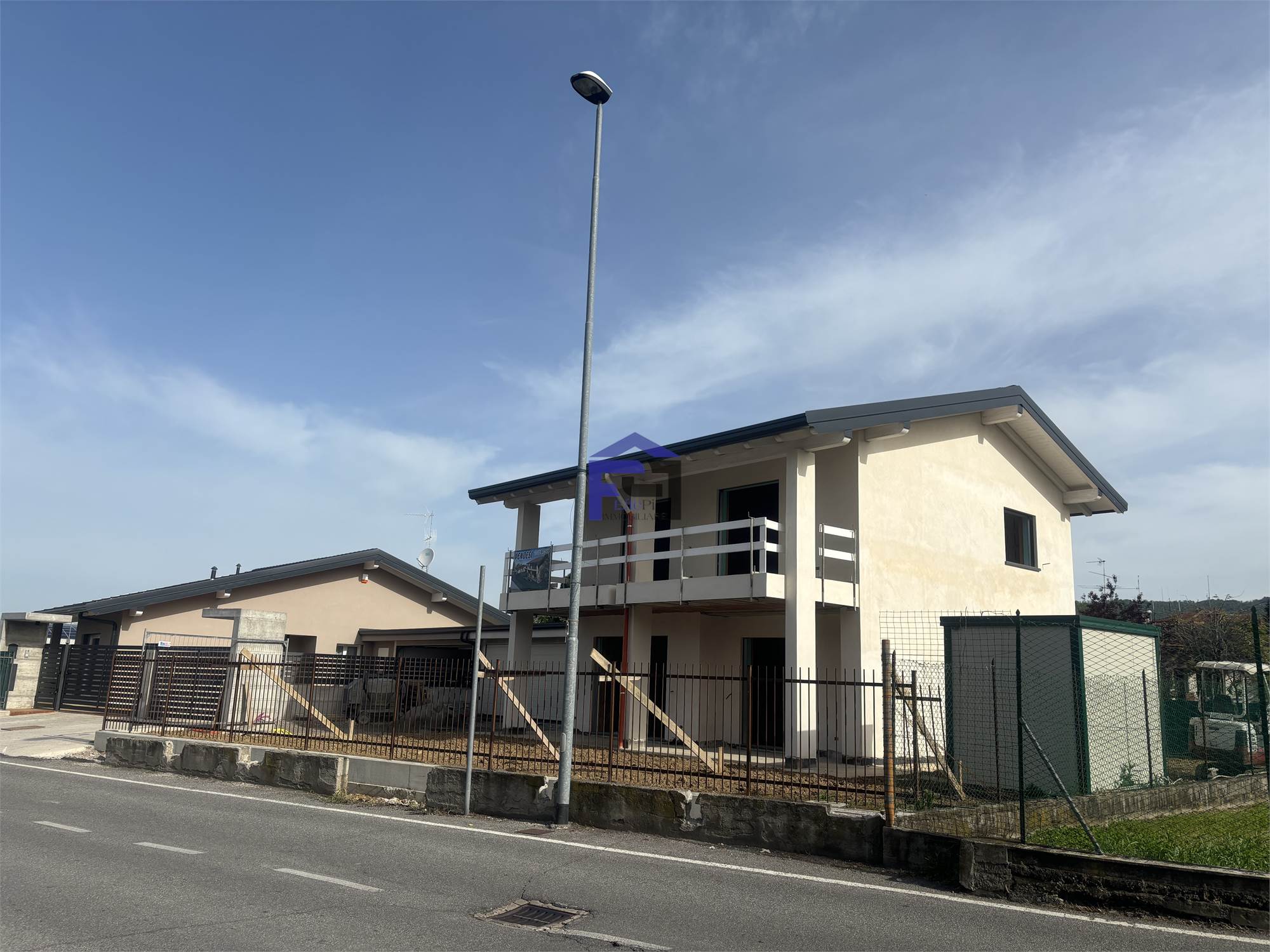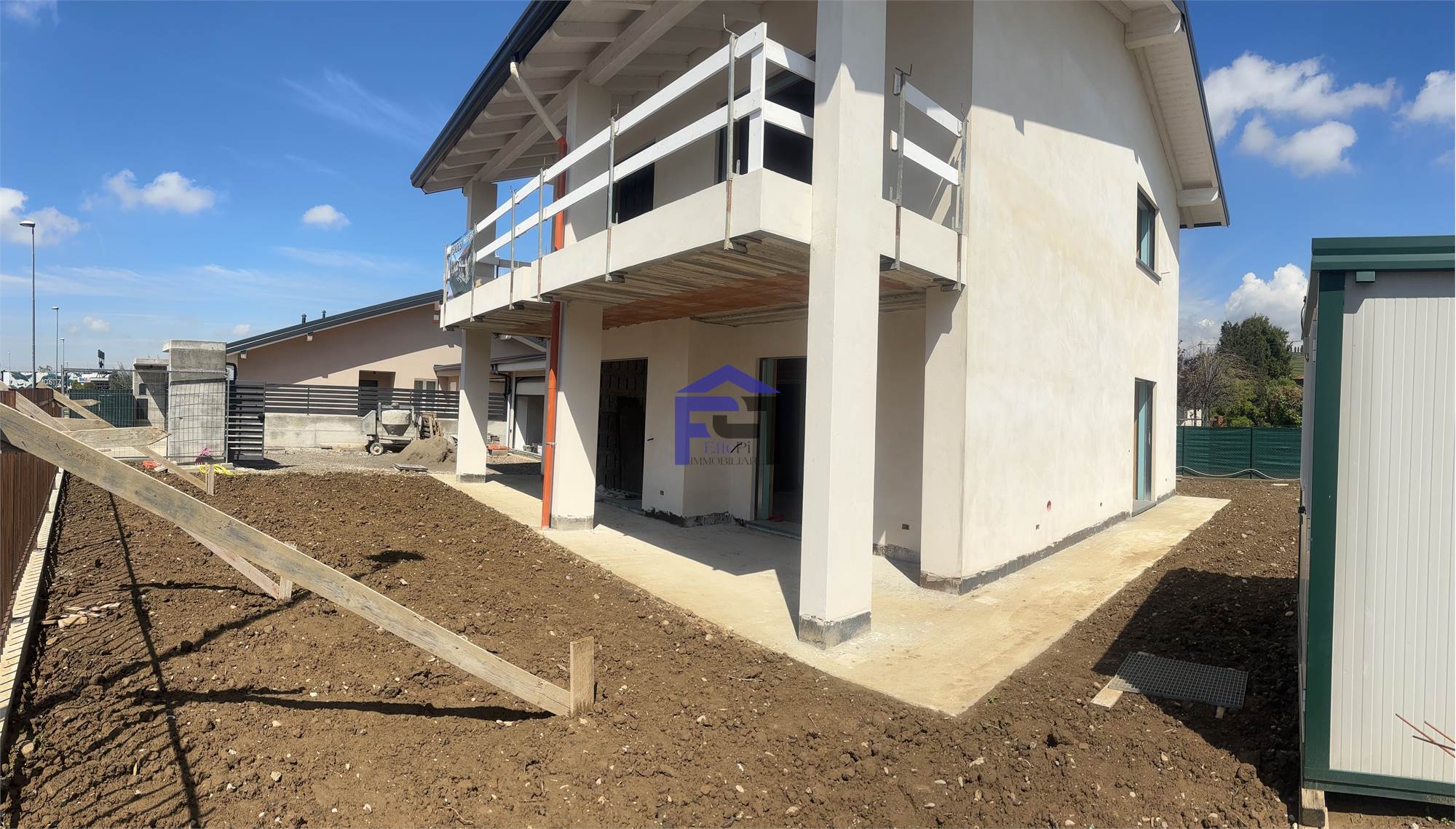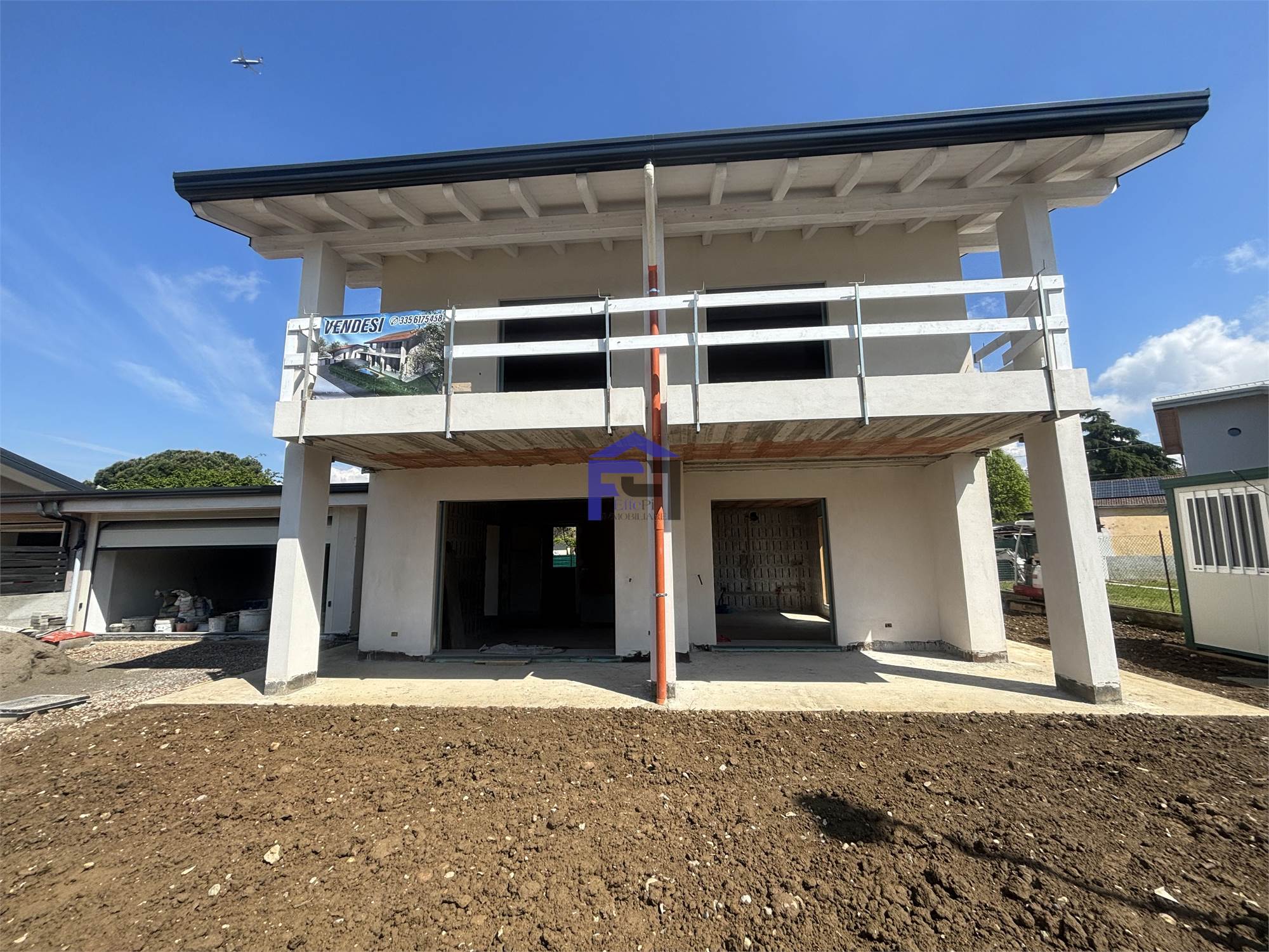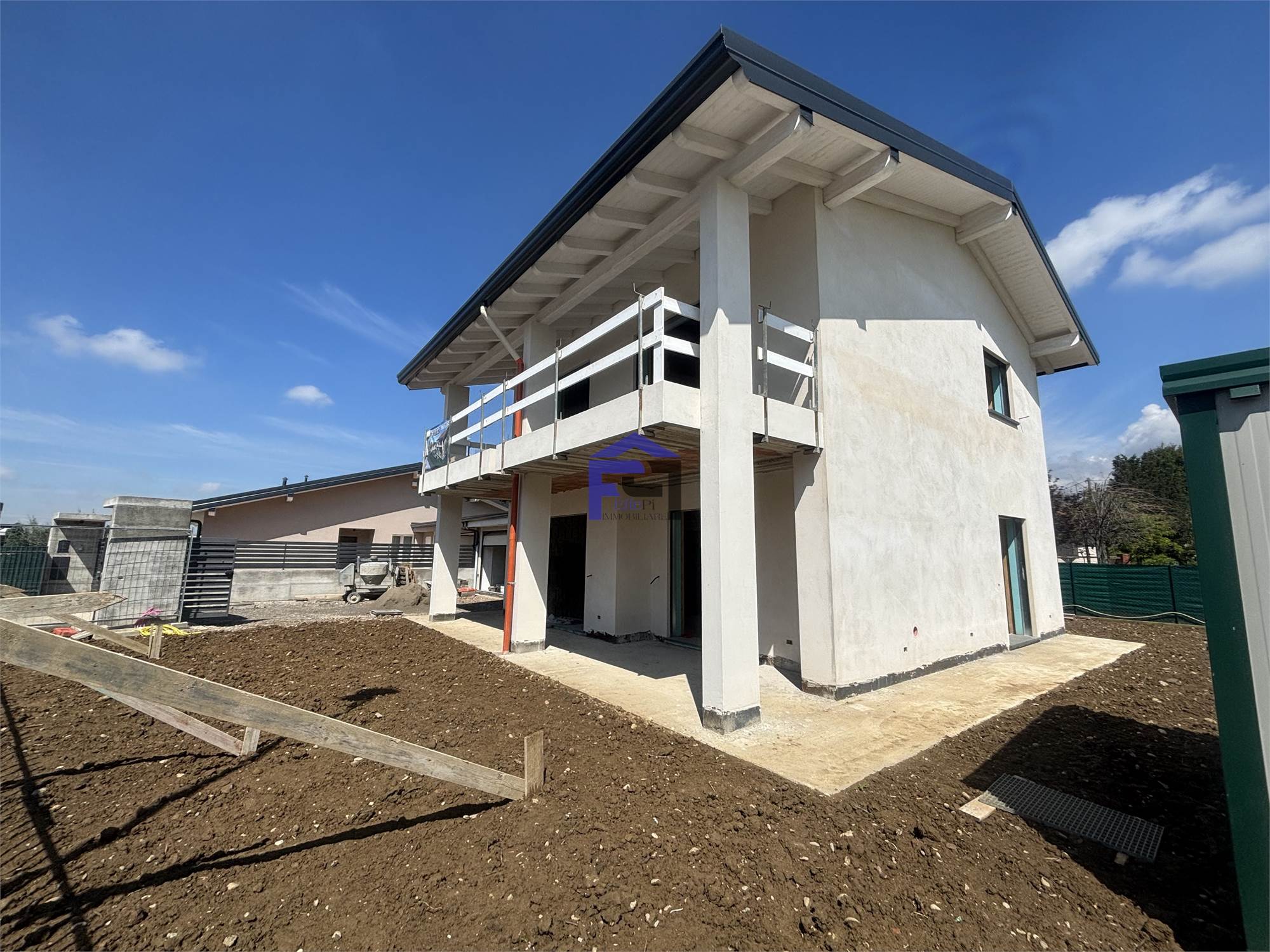 Disponiamo di villa bifamiliare completamente indipendente con ampio giardino privato su tre lati. Al piano terra box all'americana doppio in larghezza. Ingresso con ampio salone, cucina, bagno e portico vivibile. Scala interna per accesso al primo piano con travi a vista composto da n. 2 camere da letto matrimoniali, bagno padronale, ripostiglio e n. 1 camera singola. Le camere sono collegate da soleggiatissima terrazza. L'immobile attualmente è al rustico per ciò che concerne le finiture interne quindi personalizzabile per la scelta di pavimenti e rivestimenti nonchè l'allestimento dei bagni. La villa è dotata di impianto fotovoltaico con riscaldamento a pavimento e raffrescamento tramite split, entrambi in pompa di calore. Serramenti in PVC con oscuranti Griesser automatizzati. Detrazione fiscale del 50% con recupero in 10 anni del costo di costruzione del box per il valore di Euro 50.000. POSSIBILITA' VENDITA AL RUSTICO !!!