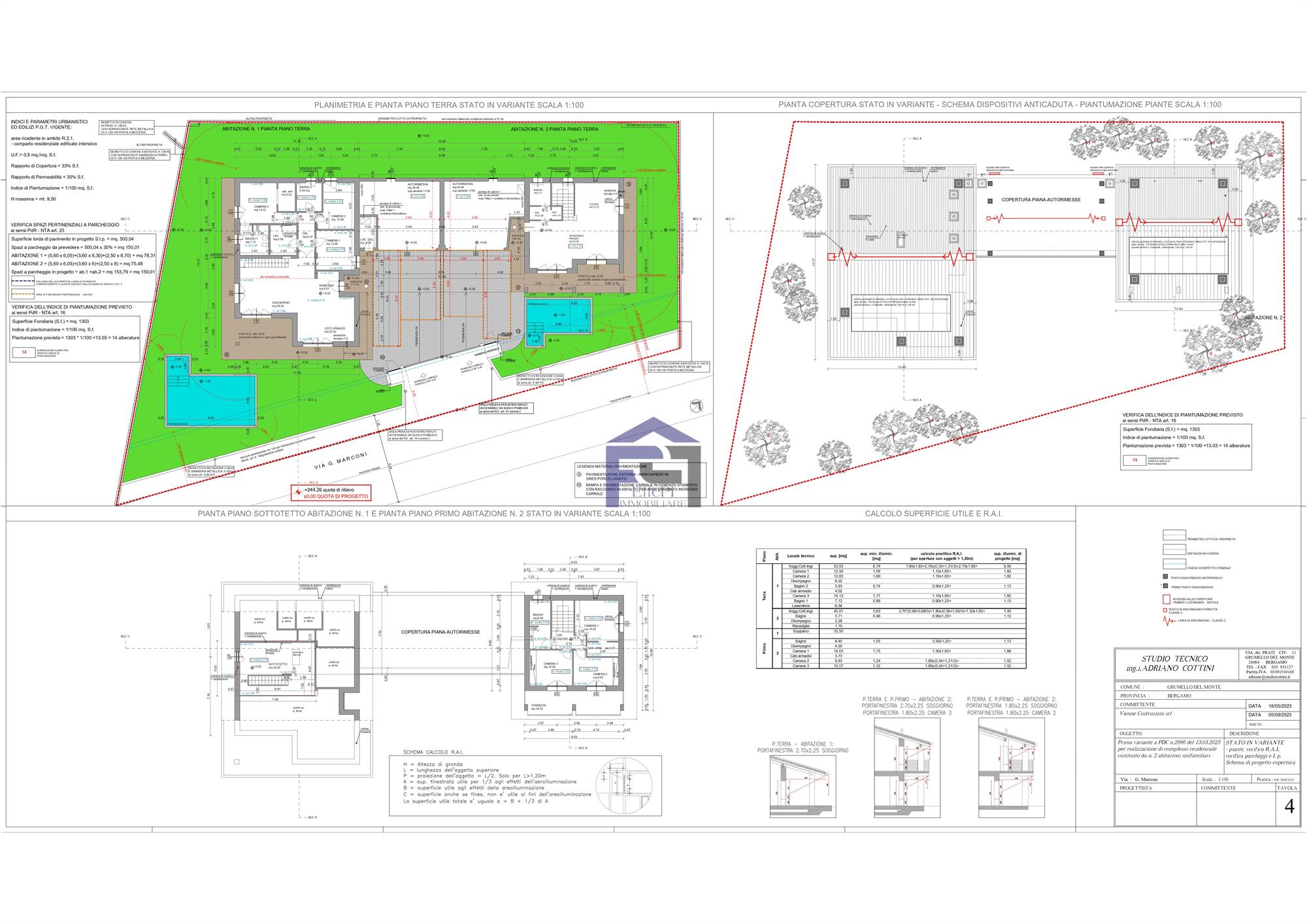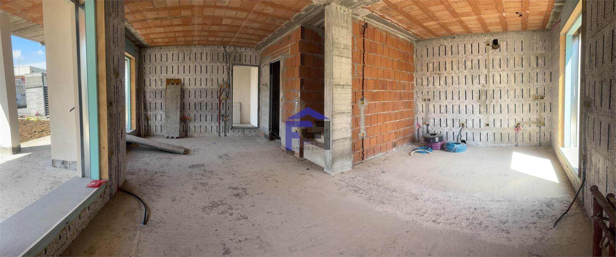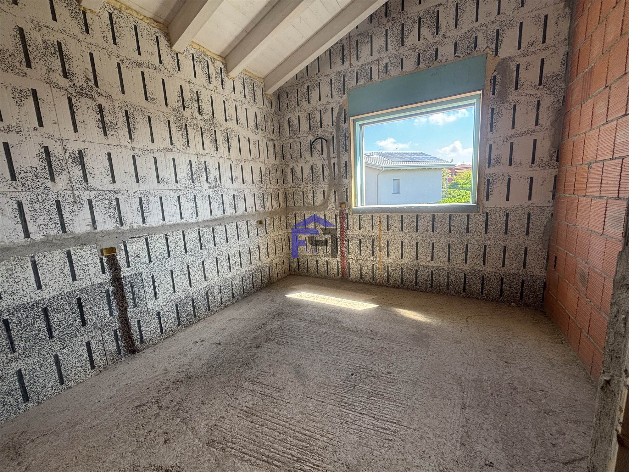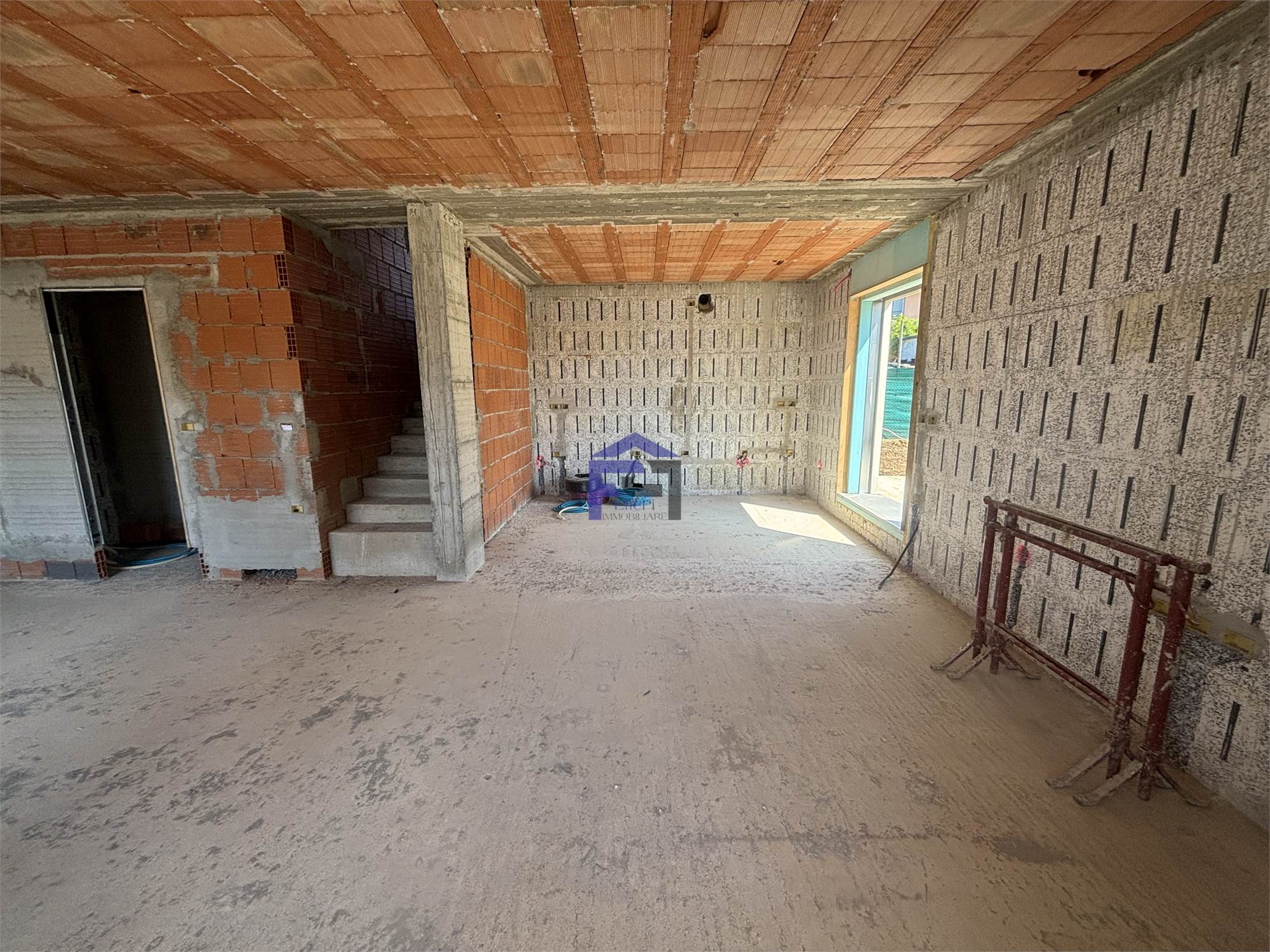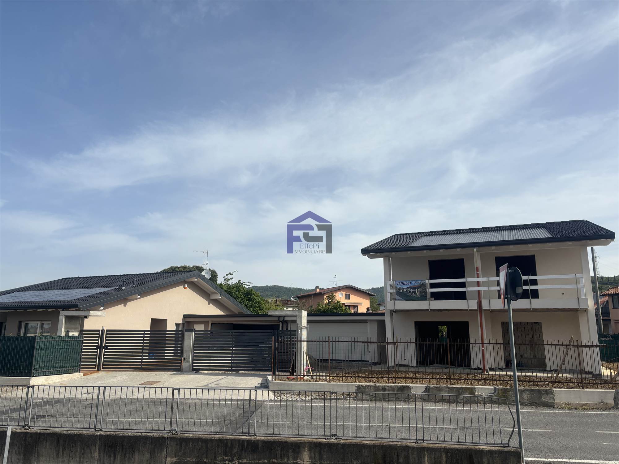 Disponiamo di villa bifamiliare completamente indipendente con ampio giardino privato su tre lati. Al piano terra box all'americana doppio in larghezza. Ingresso con ampio salone, cucina, bagno e portico vivibile. Scala interna per accesso al primo piano con travi a vista composto da n. 2 camere da letto matrimoniali, bagno padronale, ripostiglio e n. 1 camera singola. Le camere sono collegate da soleggiatissima terrazza. L'immobile attualmente è al rustico per ciò che concerne le finiture interne quindi personalizzabile per la scelta di pavimenti e rivestimenti nonchè l'allestimento dei bagni. La villa è dotata di impianto fotovoltaico con riscaldamento a pavimento e raffrescamento tramite split, entrambi in pompa di calore. Serramenti in PVC con oscuranti Griesser automatizzati. Detrazione fiscale del 50% con recupero in 10 anni del costo di costruzione del box per il valore di Euro 50.000. POSSIBILITA' VENDITA AL RUSTICO !!!